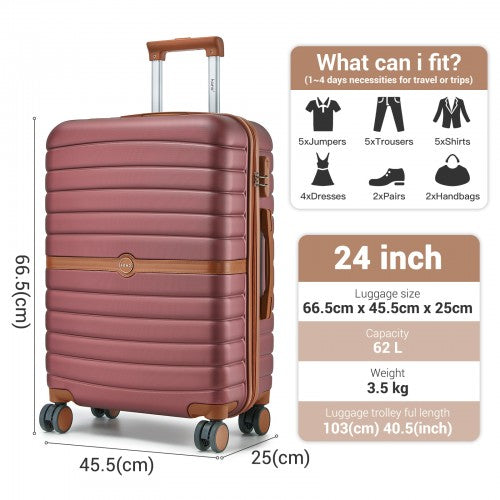 KSK2592 - Kono ABS+PC 24-Inch Striped Design with Colour-Block Details Medium Suitcase with Spinner Silent Wheels - Burgundy and Brown